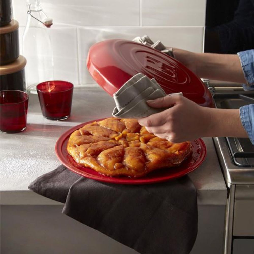 Inspirado en el clásico postre francés, el Molde Tarte Tatin de Emile Henry fue diseñado para realizar la receta completa en un solo utensilio: desde caramelizar las manzanas en la hornalla hasta hornear la masa y servir directamente en la mesa.